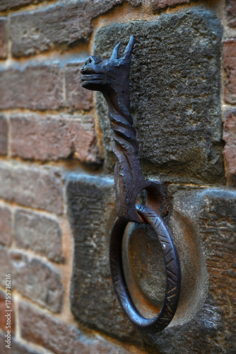 Obraz premium Anneau médiéval en fer pour attacher les chevaux dans une rue de Sienne