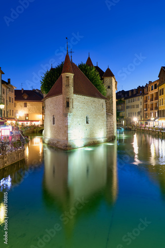 Obraz premium Annecy Haute Savoie France. The Palais de l'Isle and Thiou river at sunset