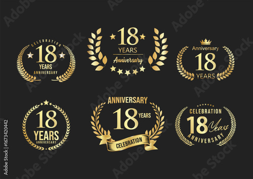 Fototapeta premium Anniversary celebrating golden laurels sign or stamp, jubilee, birthday...