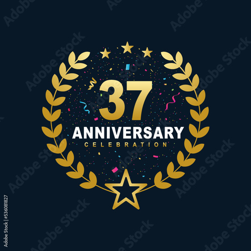 Naklejka premium 37 Anniversary celebration design, luxurious golden color 37 years...