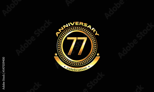 Naklejka premium 77 anniversary celebration. 77th anniversary celebration. 77 year anniversary celebration logo with black background.