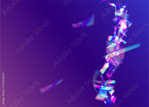 © Holo Art, Fototapeta premium Anniversary Confetti. Laser Iridescent Serpentine. Color Burst. Isolated Tinsel. Abstract Banner. Art Sparkle. Explosion Glitter. Pink Light Ribbon. Purple Anniversary Confetti