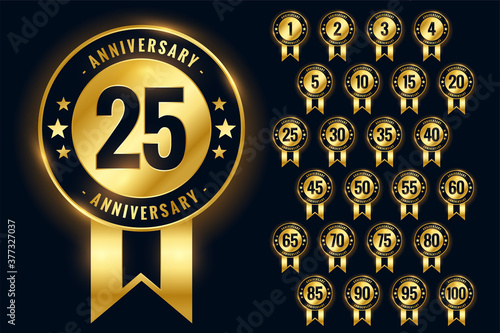Fototapeta premium anniversary golden badges labels or emblem logotype set