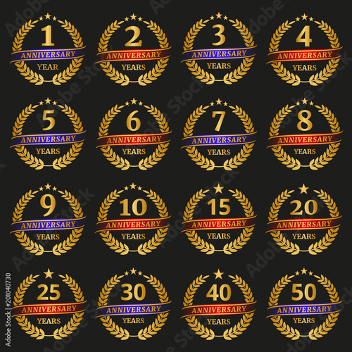 © Serhii, Naklejka premium Anniversary golden laurel wreath set.
