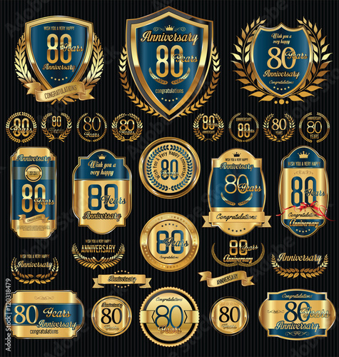 Obraz premium Anniversary golden shields laurel wreaths and badges collection