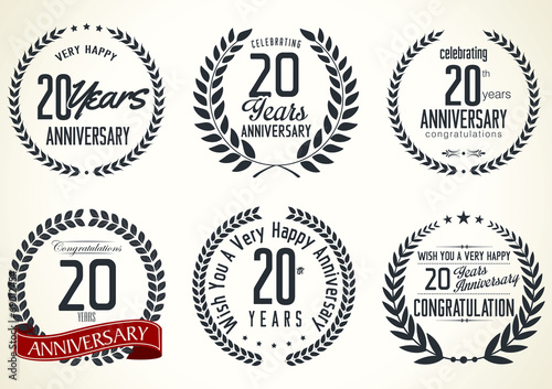 Fototapeta premium Anniversary laurel wreath retro labels, 20 years