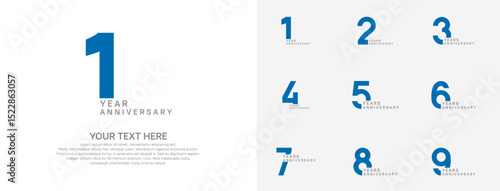 Naklejka premium Anniversary logo set vector design, blue color for celebration event