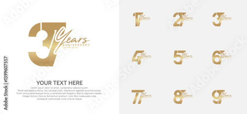 Fototapeta premium Anniversary logo set vector design, golden color for celebration event