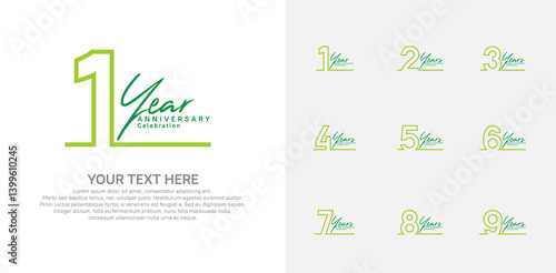 Naklejka premium Anniversary logo set vector design, green color for celebration event