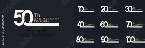 © AMALIYA, Naklejka premium Anniversary logo set vector design, white and golden color for celebration event