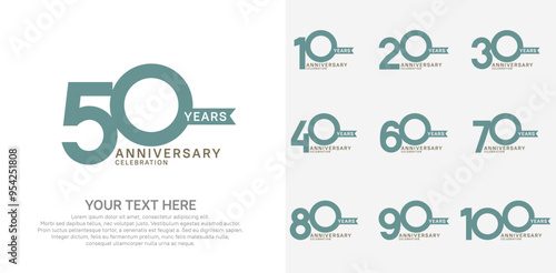 Naklejka premium anniversary set, green and black color with ribbon for celebration event