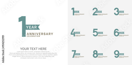 © AMALIYA, Naklejka premium anniversary set, green and black color with ribbon for celebration event