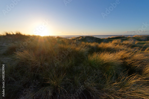 © hassan bensliman, Naklejka premium Annoville sand dunes protected area in Normandy coast
