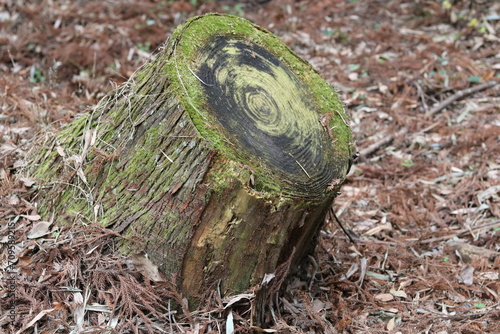 Obraz premium Annual tree ring with moss growing on it