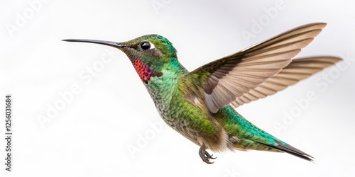 © Ruby, Obraz premium Annular Composition Green-backed Hummingbird in Flight, White Background, Bird Photography Hummingbird, wildlife photography