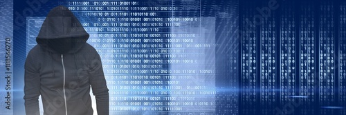 © vectorfusionart, Obraz premium Anonymous hacker with computer code binary interface