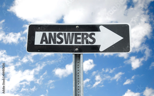 Fototapeta premium Answers direction sign with sky background