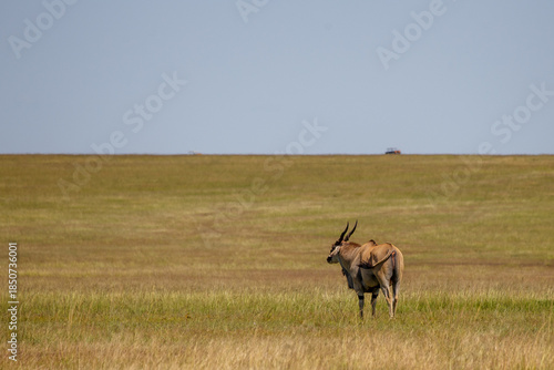 © DavidEnFoco, Fototapeta premium Antílope Eland común pastando en la reserva nacional Masái Mara, Kenia