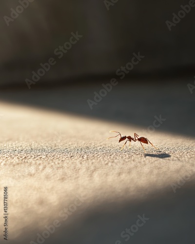 © Suradet Rakha, Obraz premium Ant Walking on a Surface Under Natural Light with Shadow