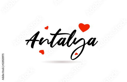 Fototapeta premium Antalya handwritten city typography text with love heart