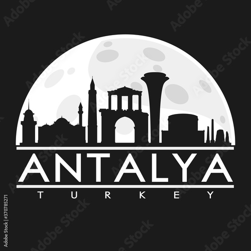 Obraz premium Antalya Turkey Full Moon Night Skyline Silhouette Design City Vector Art.