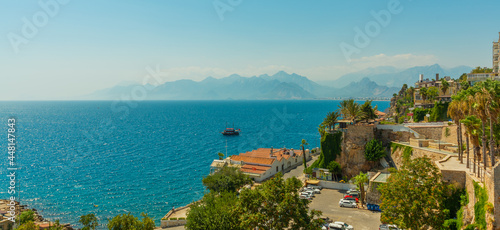 © Anna ART, Obraz premium ANTALYA, TURKEY: Top view of the old town, the sea and the mountains on a sunny summer day in Antalya.