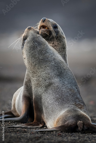 © foto4440, Fototapeta premium Antarctic fur seal,Arctophoca gazella,on Deception Island beach, Antartic peninsula.