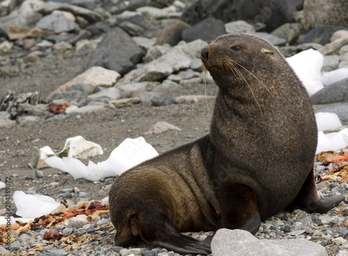 Fototapeta premium Antarctic fur seal on beach in Antarctica