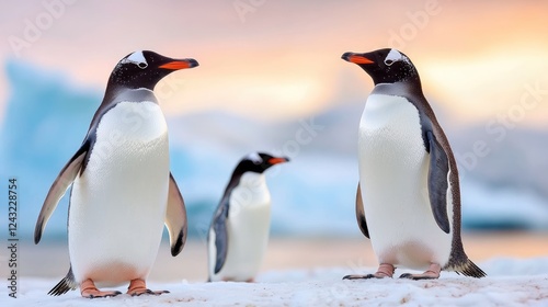 Fototapeta premium Antarctic penguins sunset icebergs wildlife