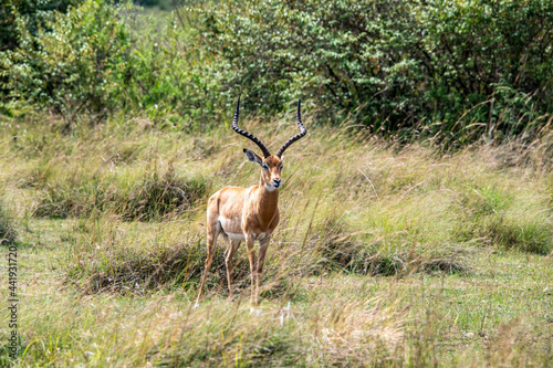 © константин константи, Naklejka premium antelope eating juicy green grass in the meadows in the national park