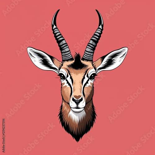Fototapeta premium antelope head on plain red background childish style illustration