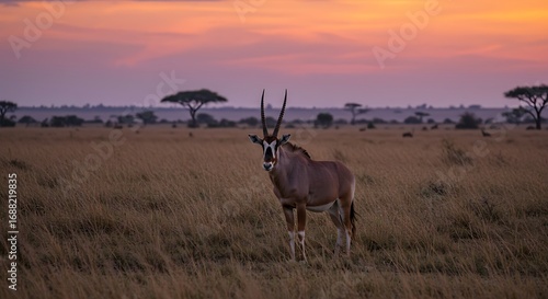 © kapten, Fototapeta premium Antelope in savanna landscape at sunrise