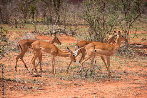Naklejka premium Antelopes seen in Ngutuni Park. Kenya safari. African adventure