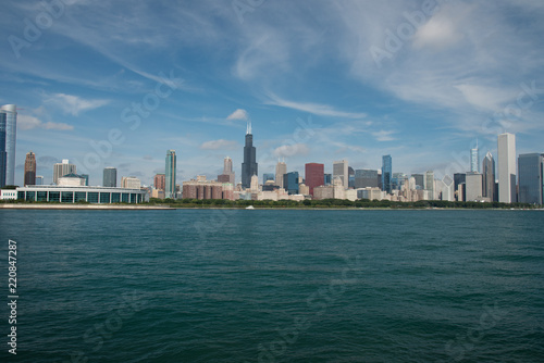 © aguinaldo, Fototapeta premium Antenowe Chicago Bay budynków mostu