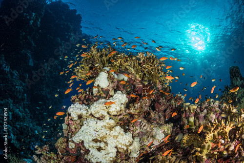 Obraz premium Anthias on the Umm Aruk divesite, Red Sea, Egypt