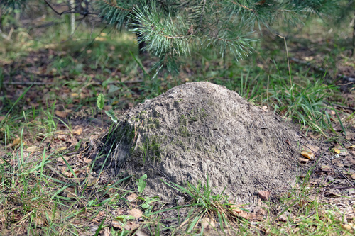 Fototapeta premium Anthill in grass in forest