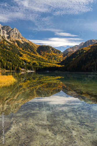 Fototapeta premium Antholzer See, Riesenfernergruppe, Südtirol, Italien