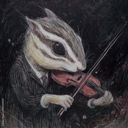 © eestingnef, Obraz premium Anthropomorphic chipmunk plays the violin.