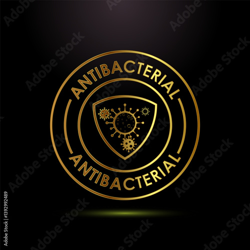 Fototapeta premium Antibacterial icon design illustration, Hygiene label symbol in gold color style