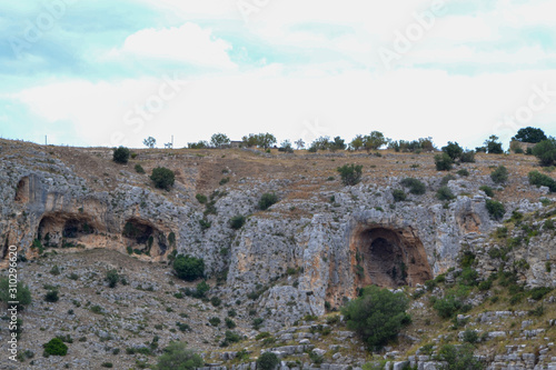 Fototapeta premium antiche grotte nella roccia della preistoria Basilicata Italia