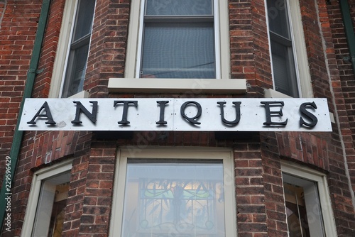 © labalajadia, Obraz premium Antiiques sign in front of the store