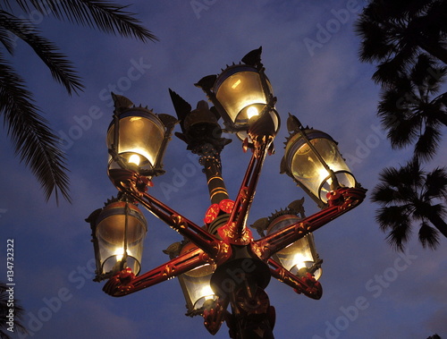 © thauwald-pictures, Obraz premium Antike Laterne leuchtend vor dunklem Abendhimmel