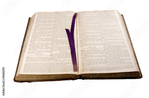 © Jeffrey Banke, Obraz premium 1812 antique Bible open at Isaiah