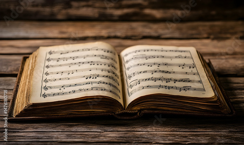 Fototapeta premium Antique book open pages aged text history education