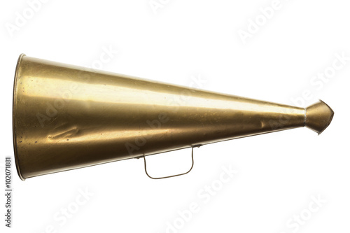 © eyewave, Naklejka premium Antique brass megaphone isolated with clipping path. Vintage brass bullhorn isolated with clipping path
