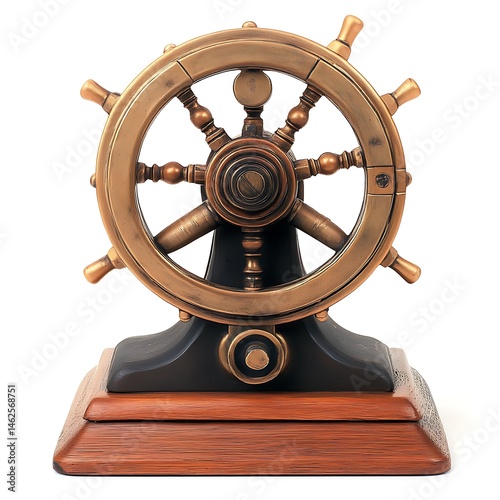 © Agus, Obraz premium Antique Brass Ship Wheel Decor.