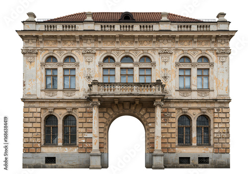 © Mayasari, Fototapeta premium Antique building facade with classical architectural details