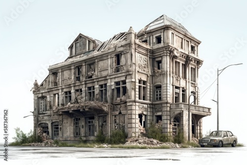 © AkuAku, Fototapeta premium antique building with a vintage car parked in front. Generative AI