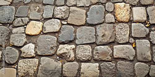 Obraz premium Antique cobblestone street background with worn-out irregular stones,...