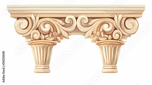© Thiago, Obraz premium Antique column isolated on white background. Ionic. Illustration